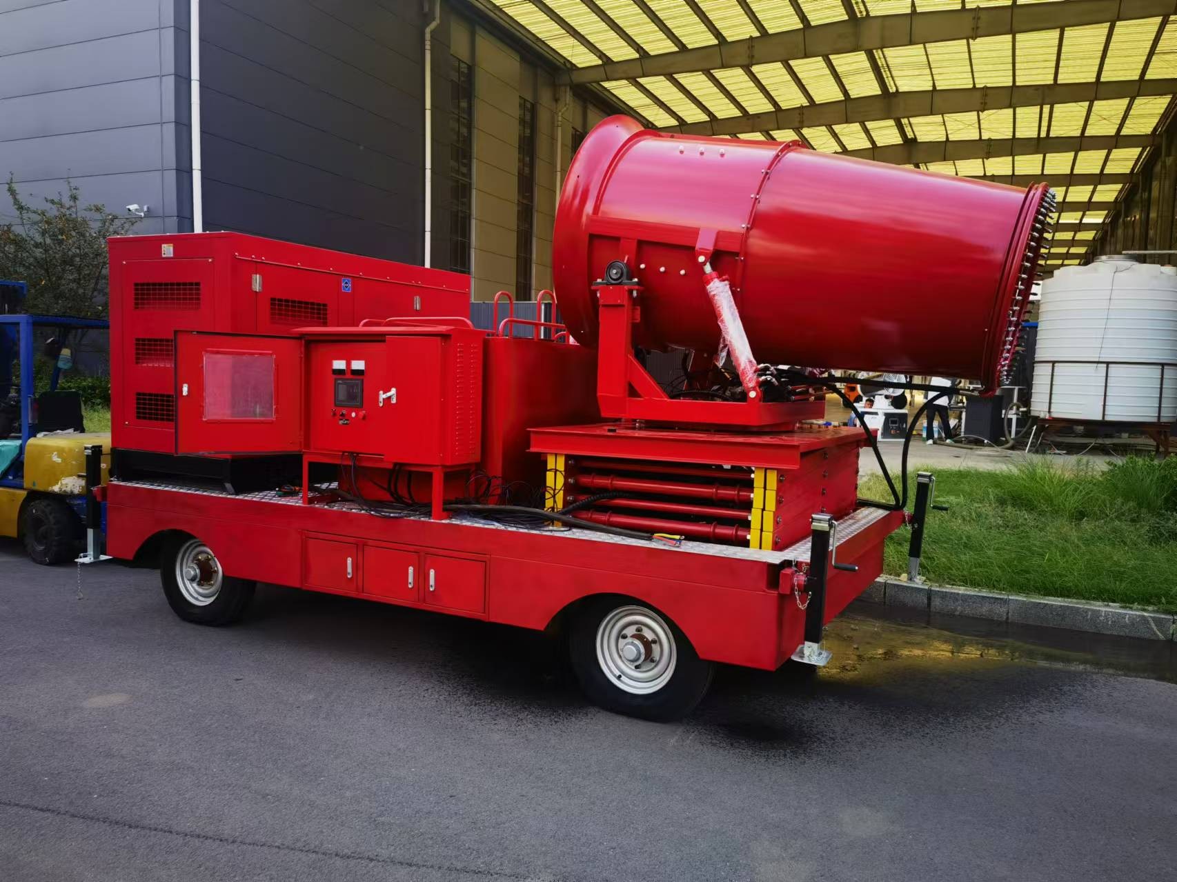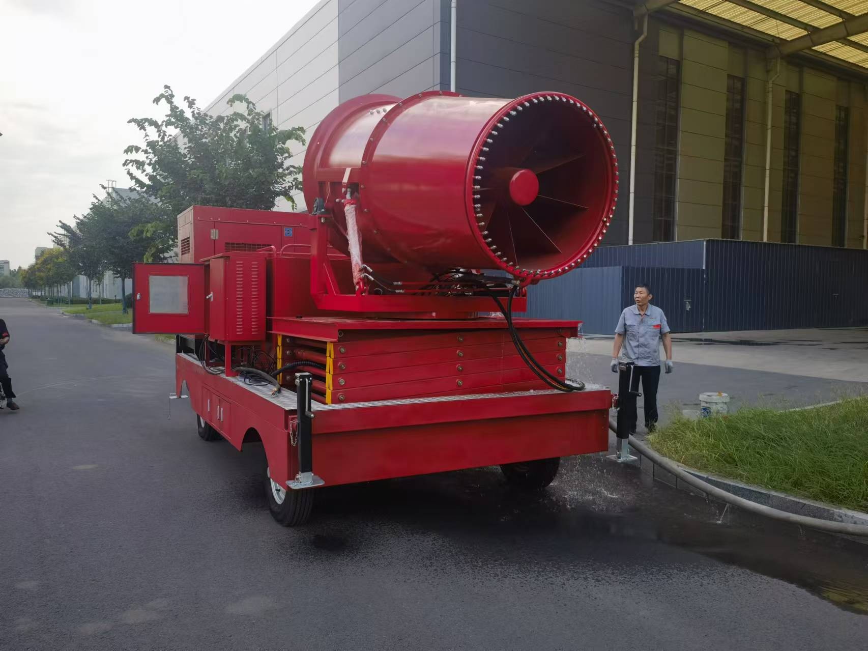 一体式喷雾抑尘拖车,主要应用于建筑工地、采石场、渣土场、煤矿、港口码头等产生大量尘土的场所,以及城市道路、公路、高速公路等需要保持清洁的交通道路。还可在消防火灾现场,吹烟排烟,现场降温,为人员提供安全保障。通过车载专用雾炮将水雾化,然后可有效把漂浮在空气中的污染颗粒物,迅速逼降地面,净化空气,提高空气湿度。